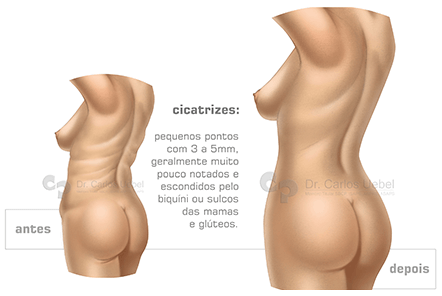 Cânulas finas acessam pequenas incisões para liquefazer a gordura, que então é aspirada. Na lipoescultura, essa gordura é tratada e utilizada para, no mesmo ato cirúrgico, melhorar o contorno corporal com a lipoenxertia.